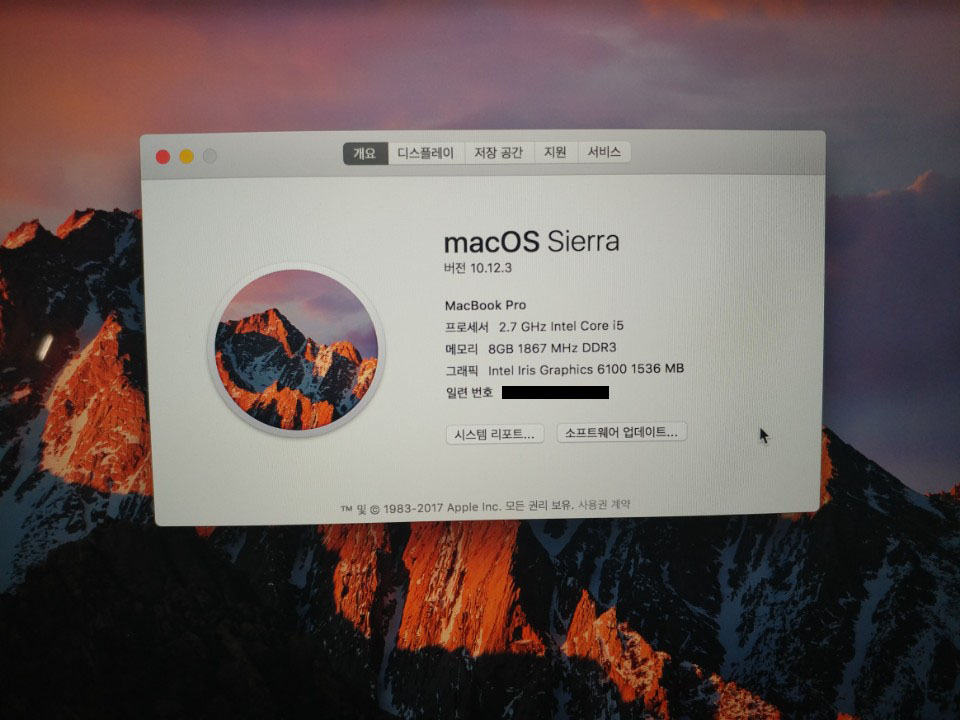 제품사양: CPU: 듀얼코어i5 2.7GHz      RAM:8G    하드용량: ssd256G