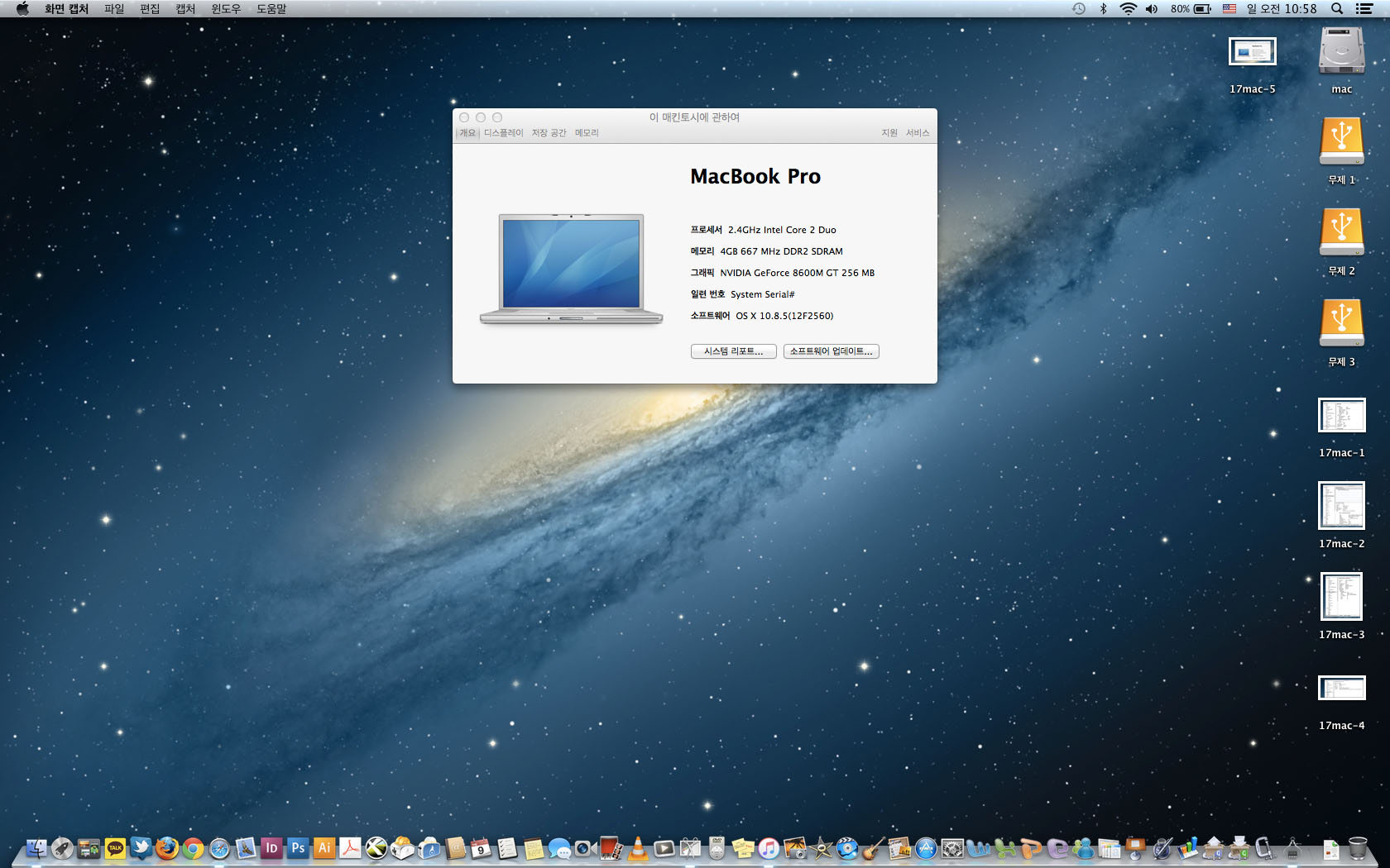 맥북프로 17인치- 맥 디자인프로그램들과 윈도우7 설치됨