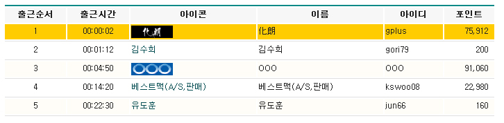 포인트랭킹 순위